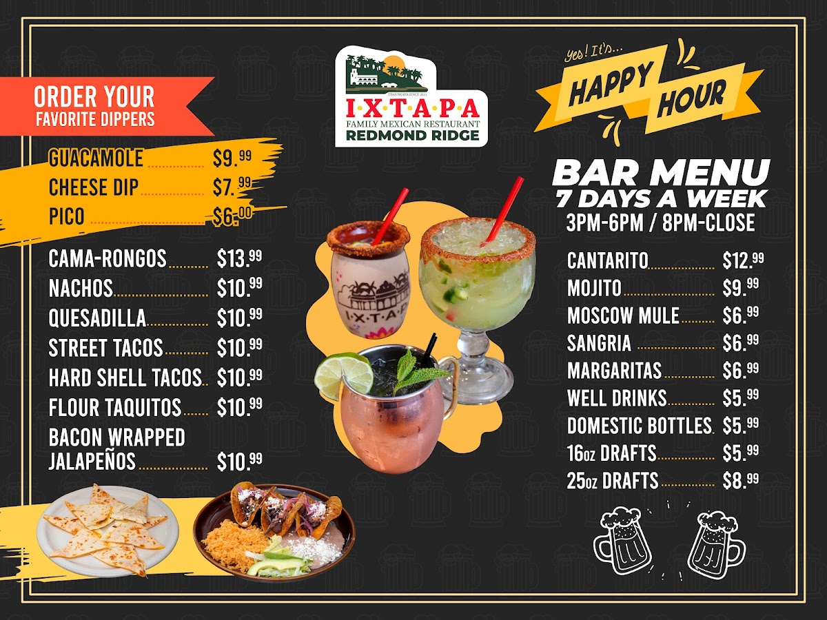 The menu at Ixtapa Redmond Ridge offers a casual and inviting selection of Latin American and Mexican dishes that are perfect for everyday dining or relaxed gatherings. Whether you’re stopping by for a satisfying lunch or enjoying a laid-back dinner with friends and family, the flavors here strike a comforting balance between traditional and familiar.